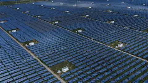 深蓝色的光伏板熠熠生辉,风力发电机的叶片迎风飞转,百米高的吸热塔和“镜子海洋”组成科技感十足的熔盐塔式光热电站……真没想到,塔拉滩这片半荒漠化的“风沙之地”,如今却成为千万千瓦级的新能源基地。